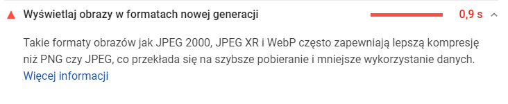 Jeżeli analizujesz swój sklep pod kątem wyników w testach Google Page Speed, możesz zauważyć, że często przewija się tam punkt zelecający używanie obrazów nowej generacji: